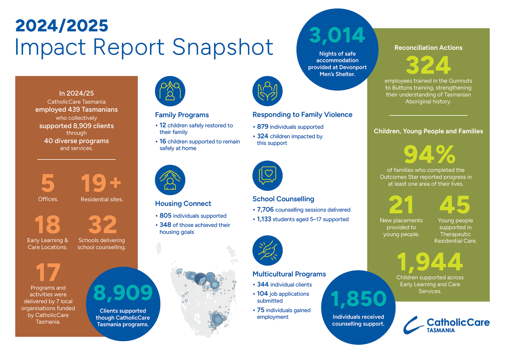 As we reflect on the past year, we are deeply grateful to our CatholicCare Tasmania community, including our partners and supporters, for helping us achieve this collective impact.